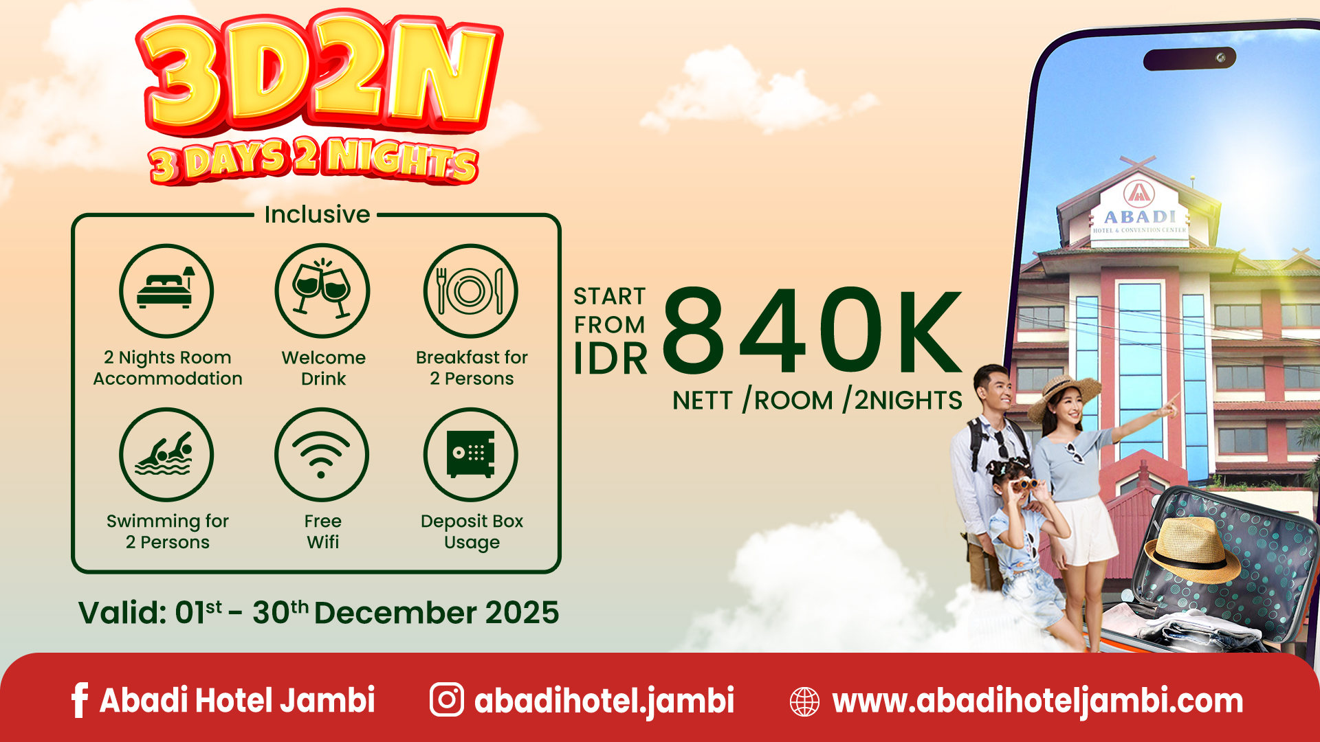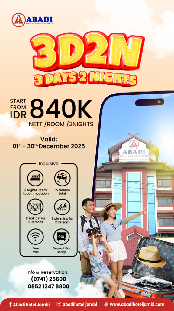 Nikmati diskon kamar 3 Hari 2 Malam selama bulan Desember 2025.